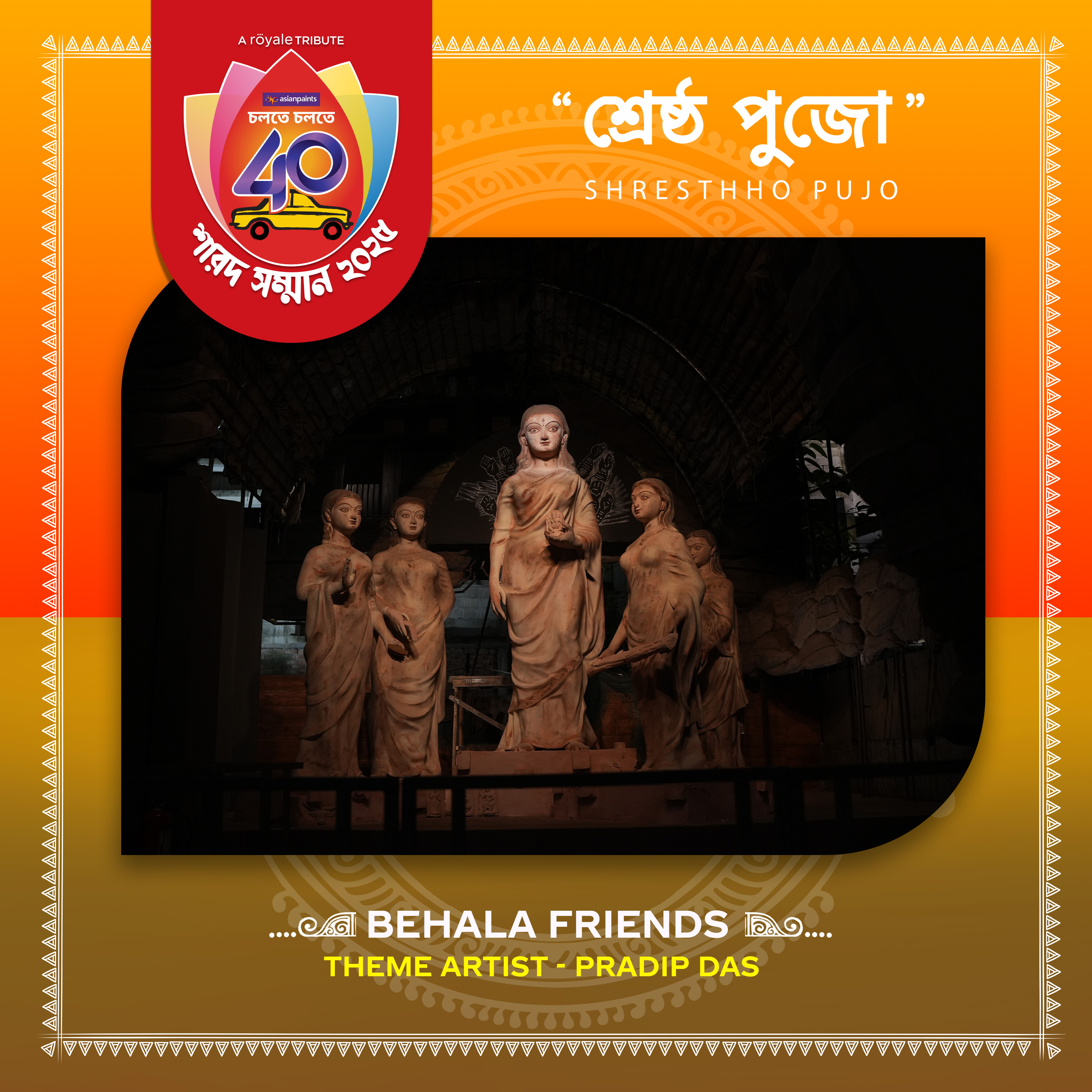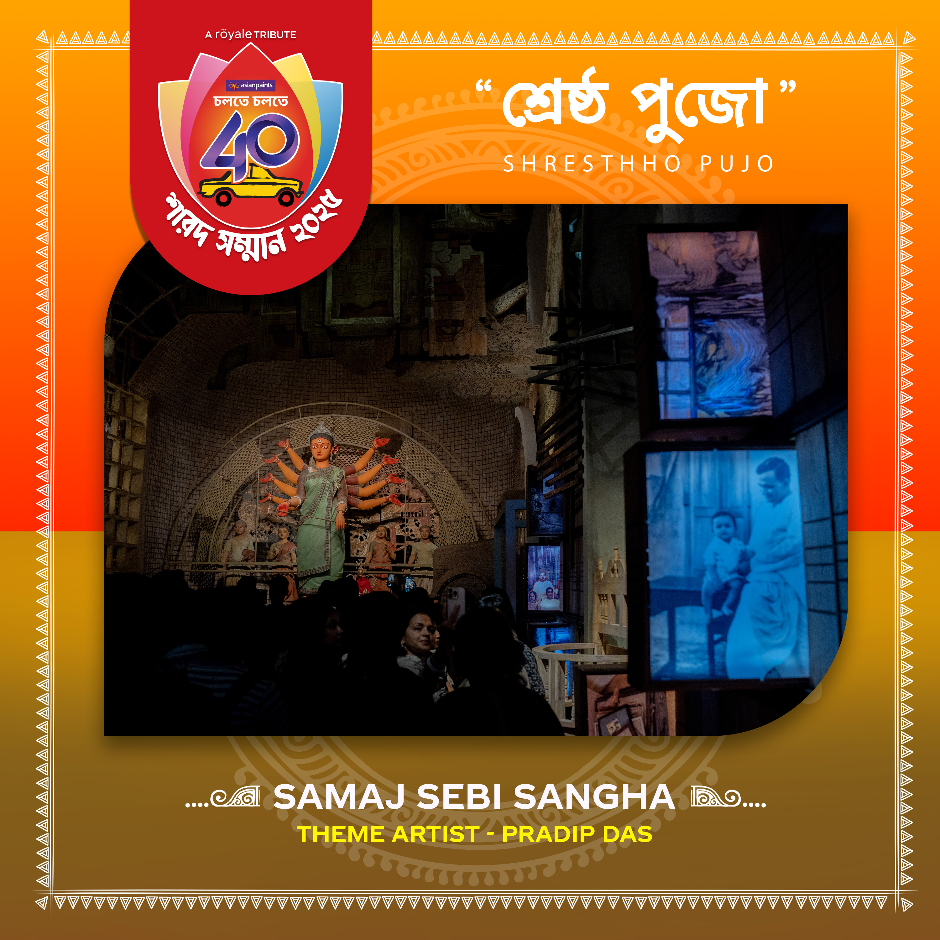 Samaj Sebi started its puja way back in 1946, right after the riot, and the theme is their interpersonal storyline. The pandal is a showcase of communal harmony and the attempt that the people during those times took to bring back a state of normalcy. This year’s pujo will be the beginning of the creation of a model street with art deco homes. The deity is embracing the euphony with ten hands, and she is in command of bringing a better tomorrow, one without violence and riots.