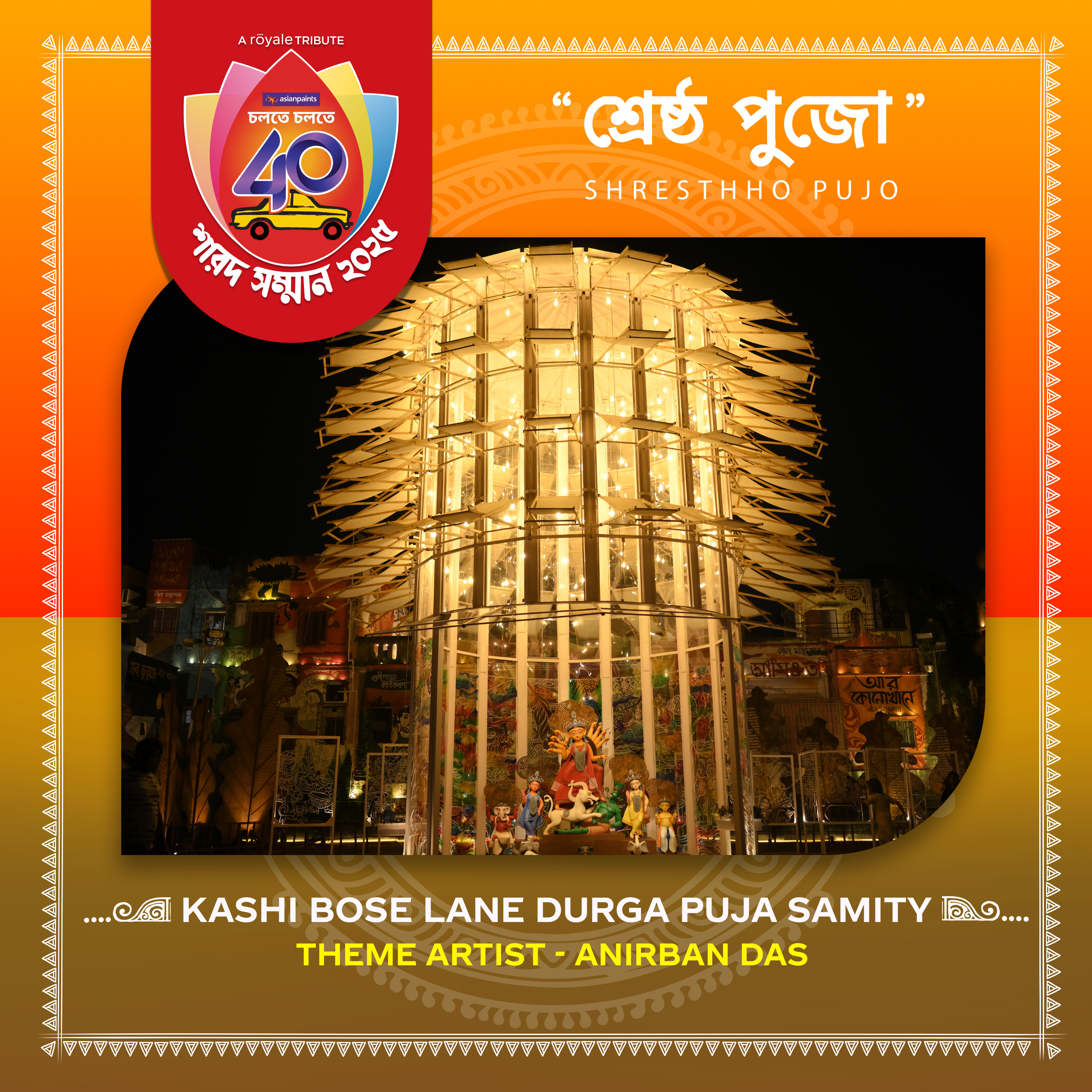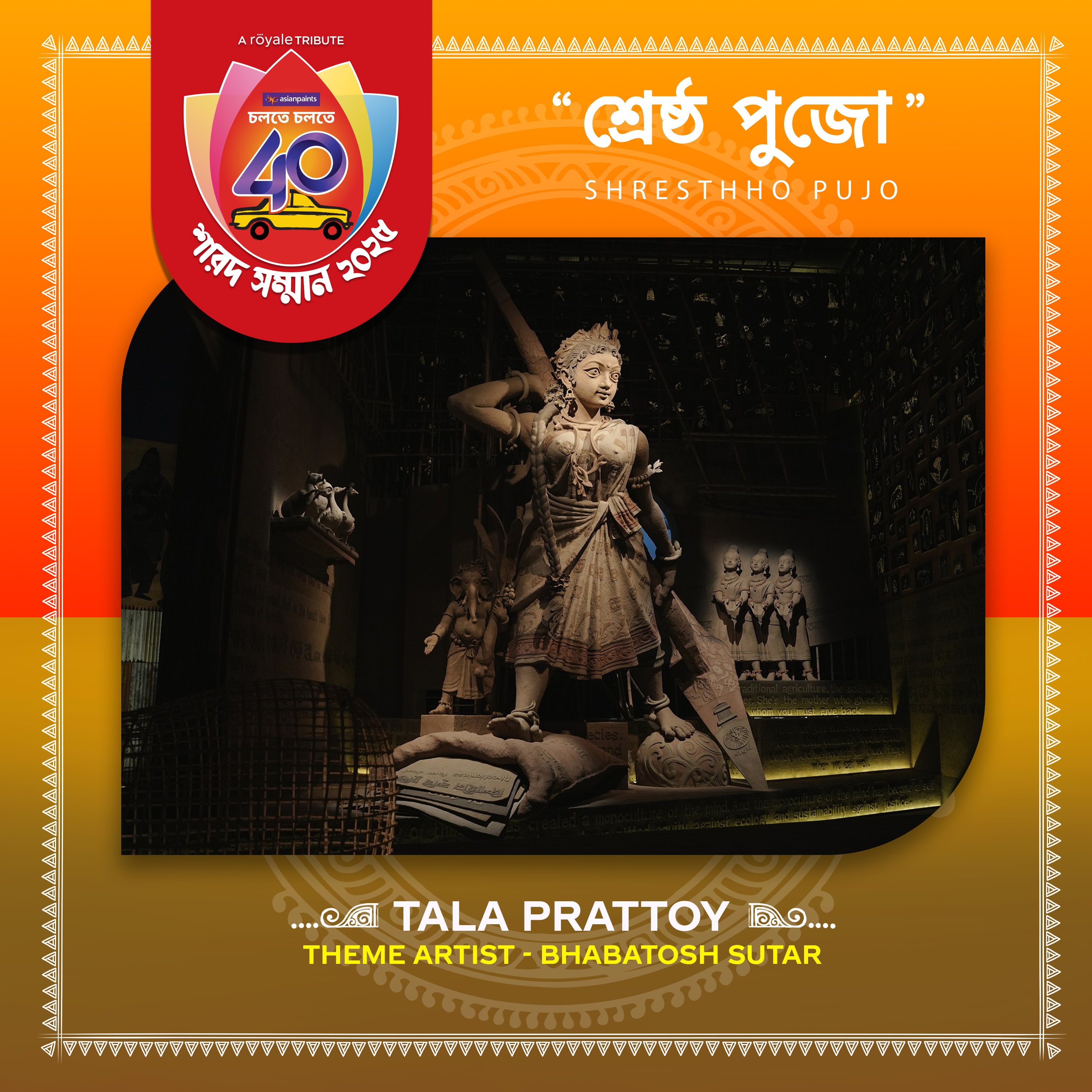 This theme has been inspired by the very life and works of the famous writer Leela Majumdar, and the theme name is truly justified by the twisted path amidst the Pine trees in her stories. The houses around the pandal have been painted with the cover pages of her books, and there is a crossword puzzle with the names of her works. An easy chair has been placed with manual kinetic installation to portray relaxation, and a gap has been created with butterflies, clouds and other props to show how a child’s mind works. The entire space, along with the deity, seems to have propped right out of a children’s storybook.